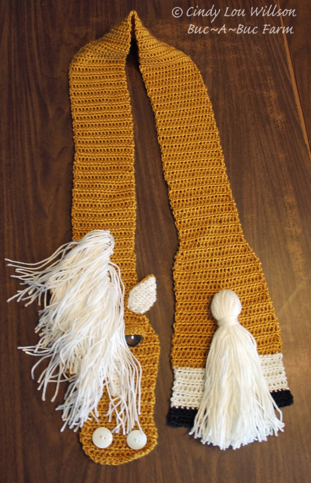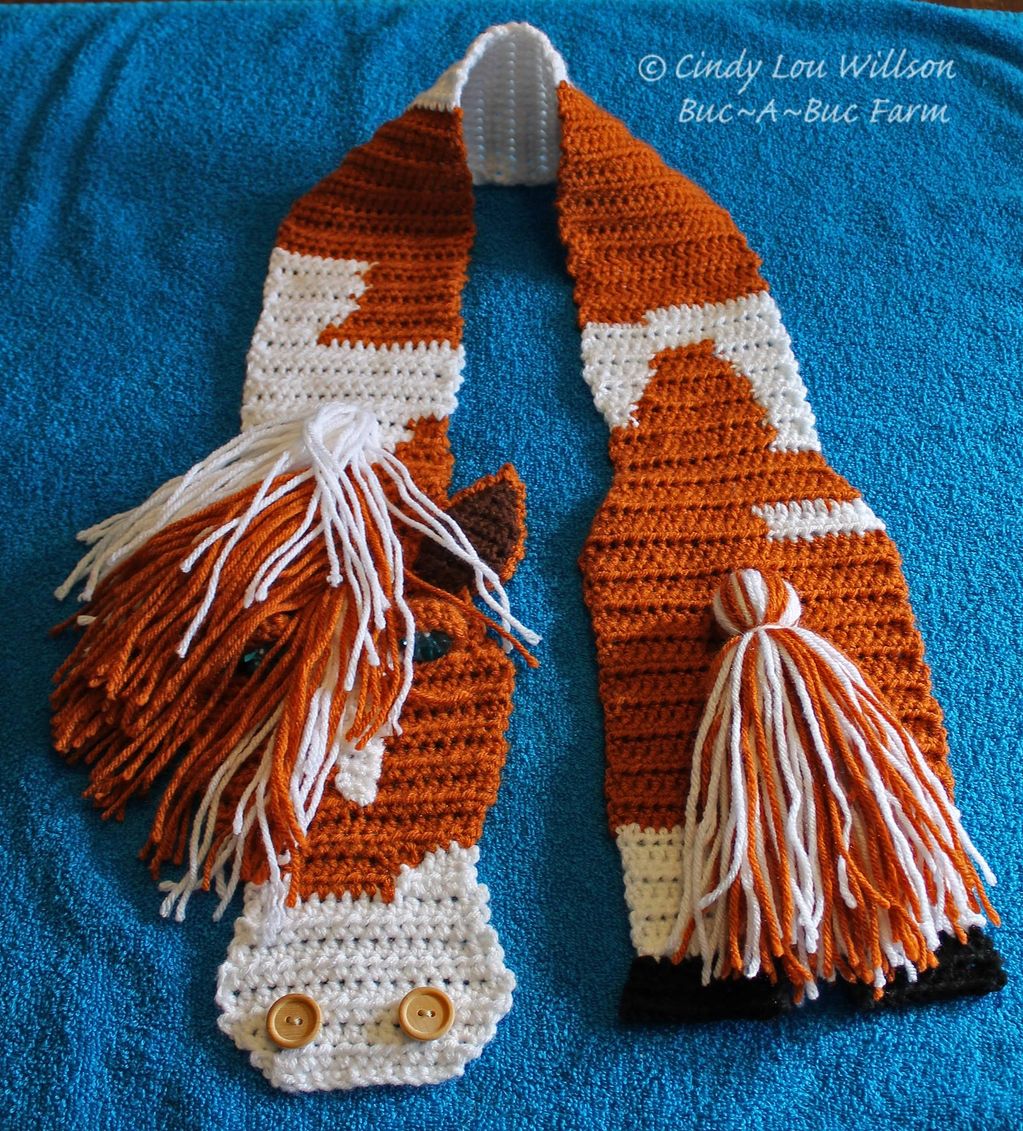 Chestnut Paint with striking blue jewel eyes, button nostrils, and two toned doubled ears for less bend. Scarf is approx. 48" long. A perfect length for smaller adults/teens/children.